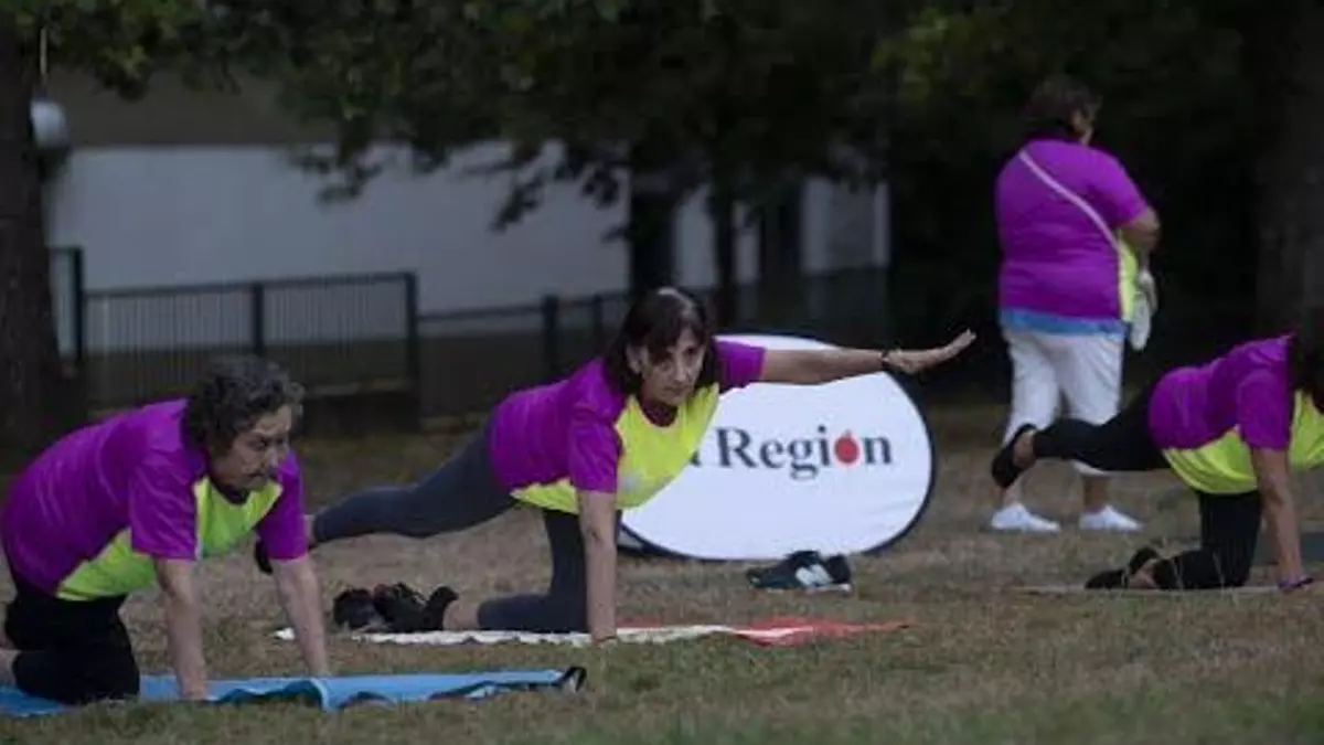 La sesión dio comienzo con la disciplina del ‘hatha yoga’, consistente en relajación de la respiración y un calentamiento previo de los músculos del cuerpo, siguiendo las instrucciones de Estela Castro, la monitora.