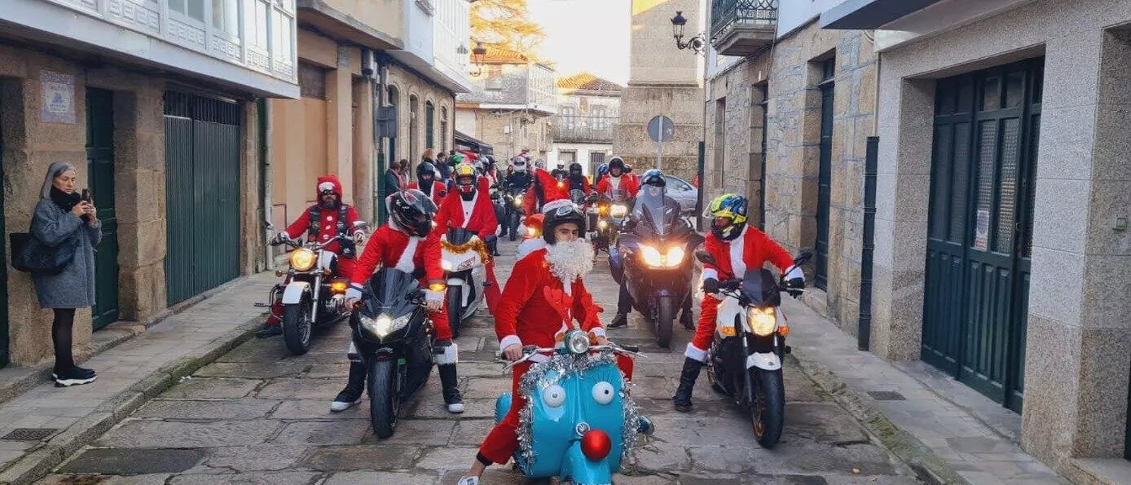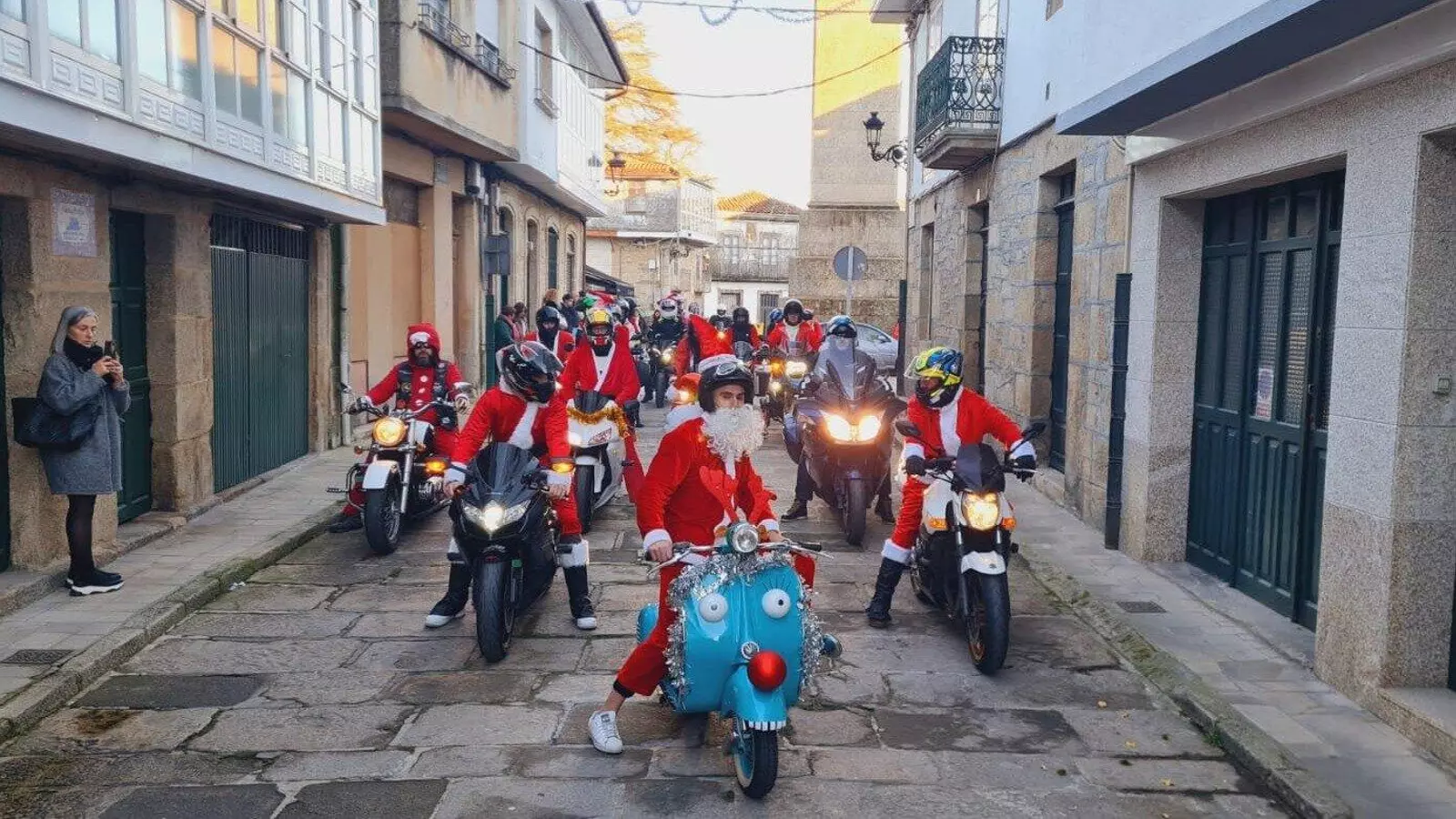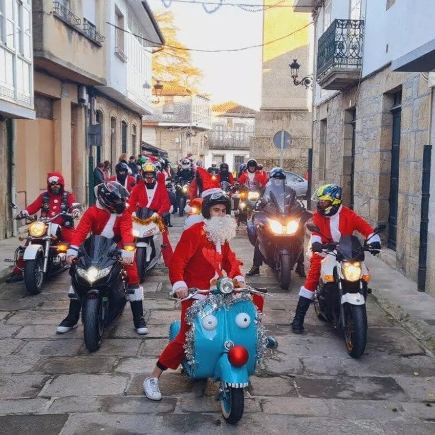 Un grupo de papa noeles en moto recorrió las calles de Trives en sus motos, una de ellas recreando al mítico reno Rudolph. El encuentro fue organizo por Motoclub Os Esquíos.