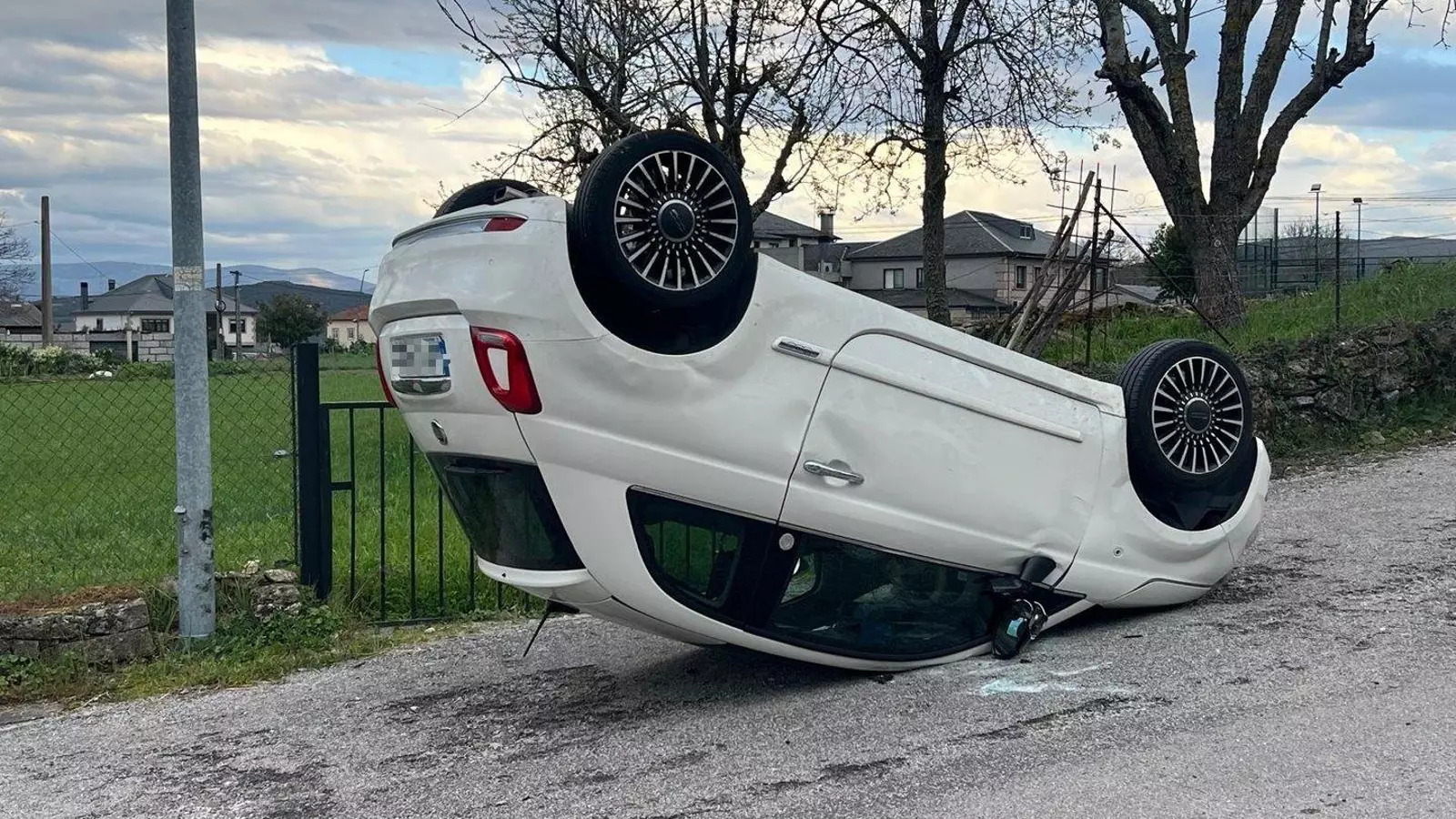 Aparatoso accidente en Manzaneda este miércoles. Una conductora se encontraba circulando por la calle do Pendón cuando terminó colisionando con otro vehículo y volcando en medio de la vía.