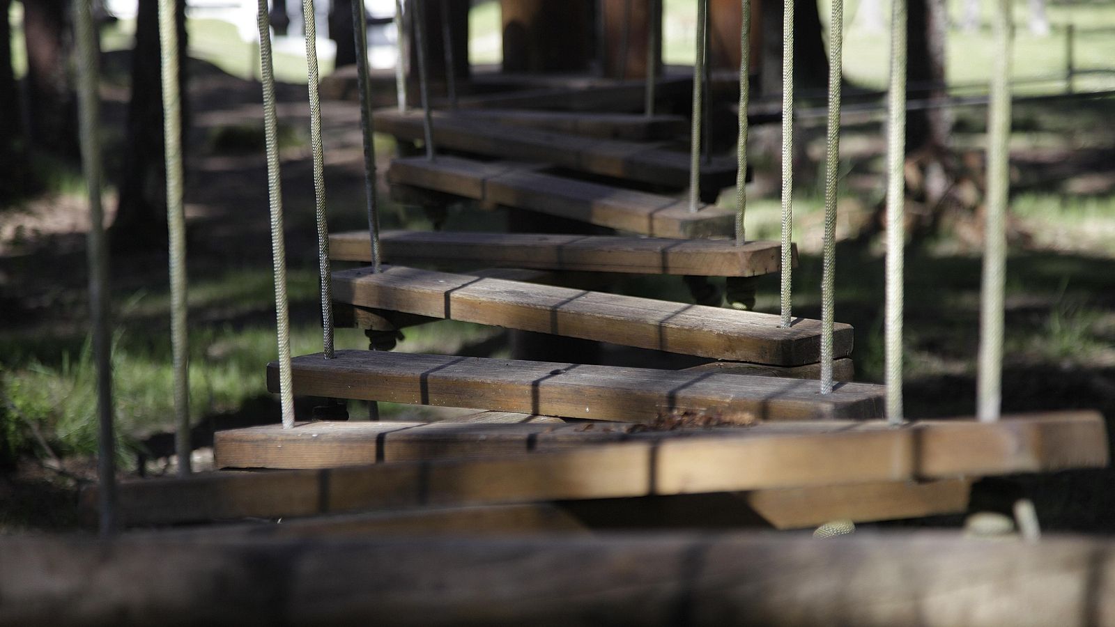 Equilibrio sobre dos cintas elásticas de tan solo 5 cm que se suspenden entre los árboles. Cuenta con dos niveles de dificultad.
