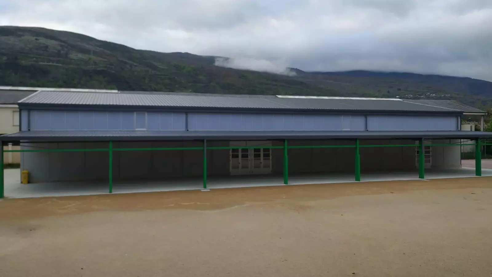 Las obras del pabellón deportivo cubierto del colegio Julio Gurriarán, en O Barco de Valdeorras, comienzan a dejar ver el resultado que ofrecerán nada más finalizadas, en el patio del centro educativo de la villa.
