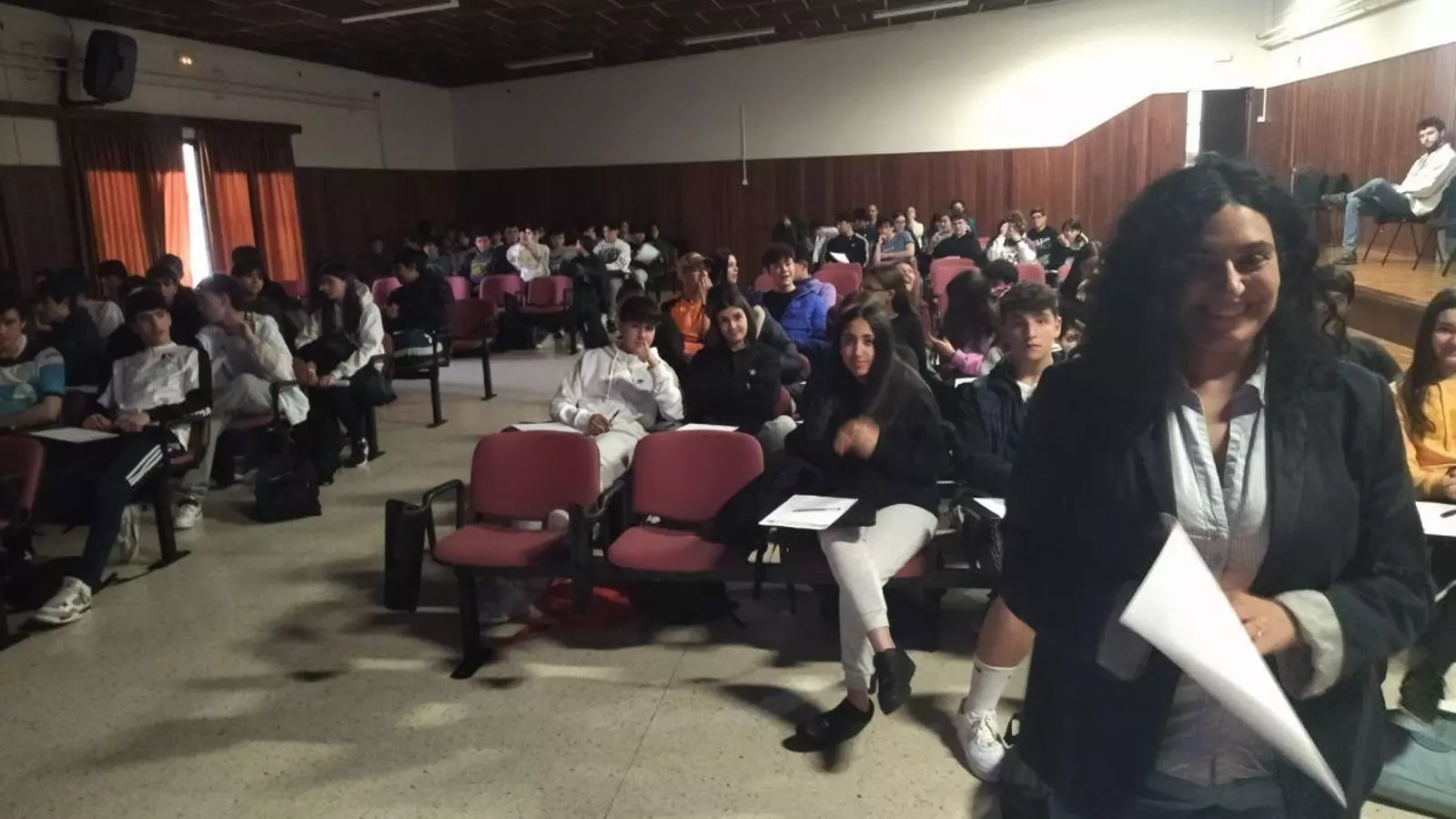 Los 128 alumnos de 4 de ESO y 1º de Bachiller del Instituto Martaguisela de O Barco asistieron a la charla de la periodista Mónica Vázquez Lopo, dentro del ciclo “Elas, produtoras executivas. Unha iniciativa para o empoderamento feminino”.