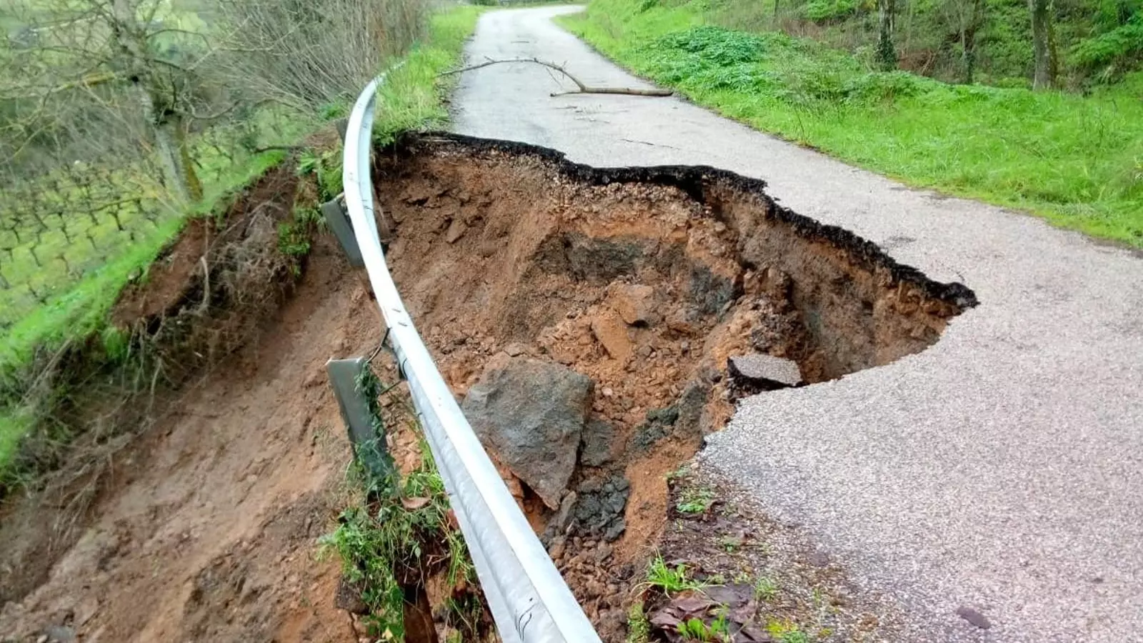 Las lluvias siguen dejando consecuencias en la provincia de Ourense, y desmoronan una carretera en Petín