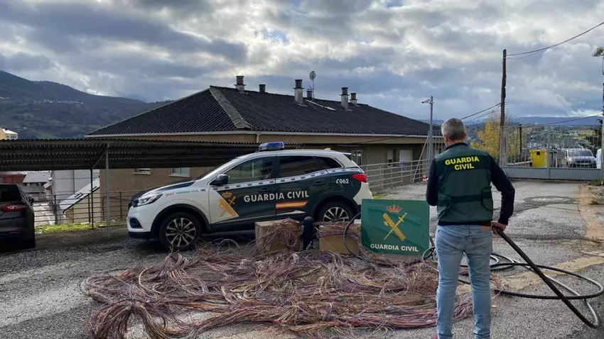 Los hechos se remontan a finales de septiembre de este año, cuando los dos detenidos robaron 6.700 metros de cable y provocaron daños valorados en 157.426 euros. El hurto afectó a 8 kilómetros de línea entre Sobradelo y Portela, en Carballeda de Avia.