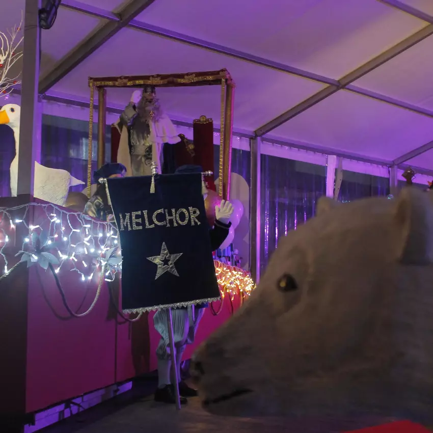 Los Reyes Magos visitan esta tarde O Barco. La cabalgata vuelve a ser estática, aunque dentro de una carpa en la praza do Concello para esquivar la lluvia. El tiempo no acompañaba, pero eso no evitó que se formara una larga cola a la intemperie para ver a Sus Majestades. La hilera llegaba hasta la comisaría de la Policía Local.