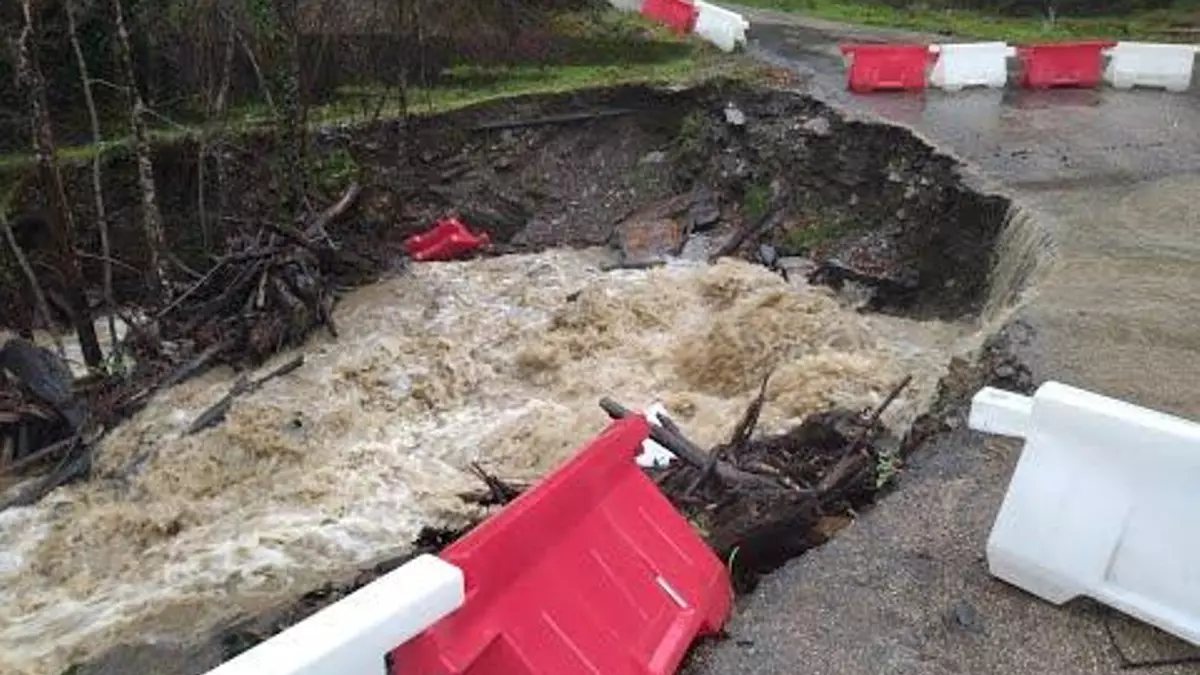Y es que la lluvia caída en las últimas horas ha dañado la parte inferior de la carretera que comunica ambos pueblos, dejándola inestable. Como consecuencia, se ha cortado el paso a los vehículos mientras la Diputación de Ourense y el Concello intentan acometer una actuación de urgencia para reabrir la vía cuanto antes.