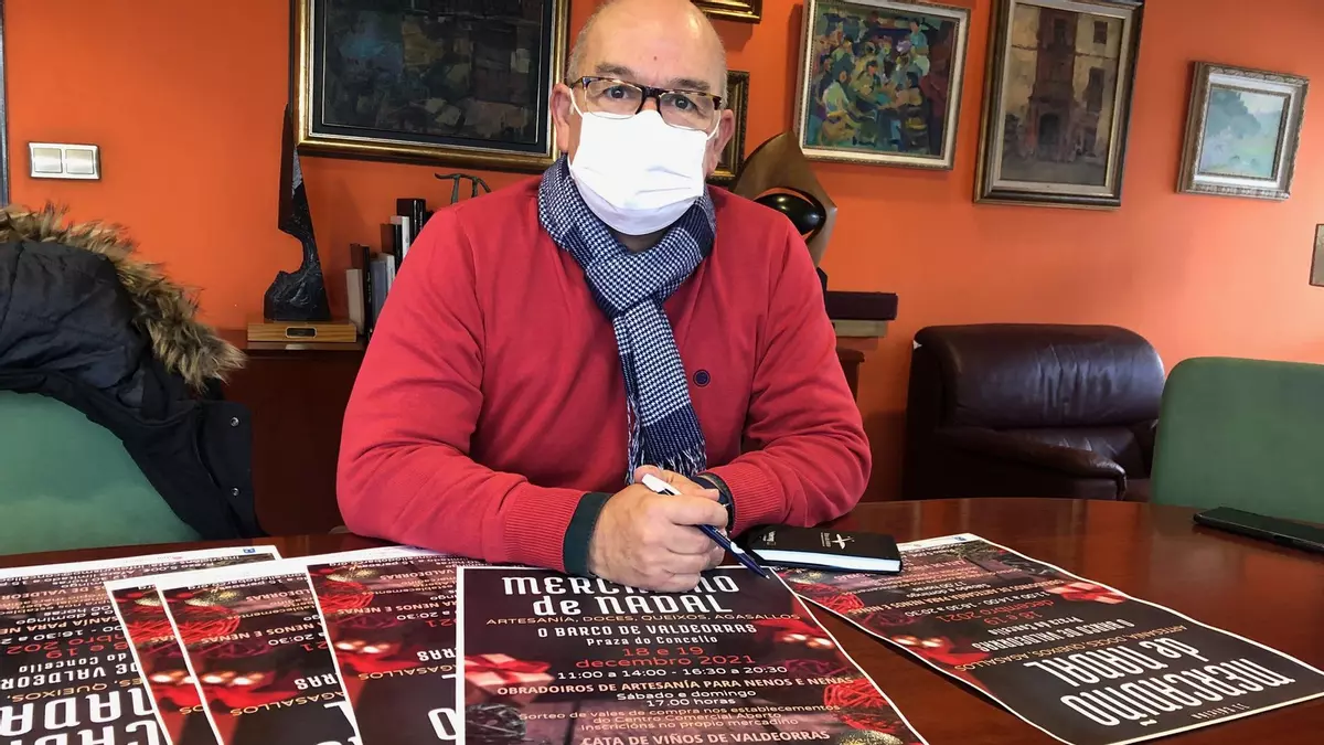 El Concello de O Barco organizará el Mercadiño de Nadal los próximos días 18 y 19 de diciembre, de 11,00 a 14,00 horas y de 16,30 a 20,30 horas en la praza do Concello. Lo presentó ayer el concelleiro de Promoción Económica, Turismo, Comercio e Consumo, Eladio Santos, que avanzó que el mercadillo contará con 20 puestos en los que se encontrarán artesanía, dulces, quesos y vinos. Además, hay programadas también actividades para los más pequeños y una cata de vinos. Santos detalló que se celebrará en una carpa abierta como prevención ante el coronavirus.
