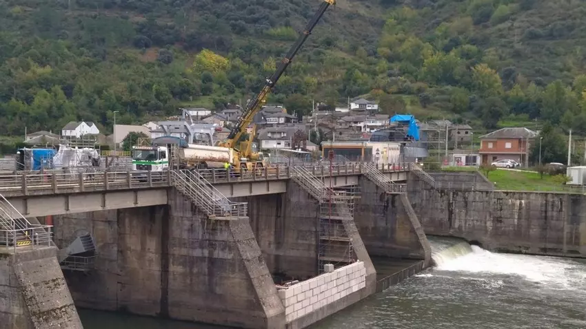 La presa de Vilamartín de Valdeorras lleva en obras dos meses para la sustitución de una pieza mal soldada que produjo el desprendimiento, en febrero de 2022, de la compuerta