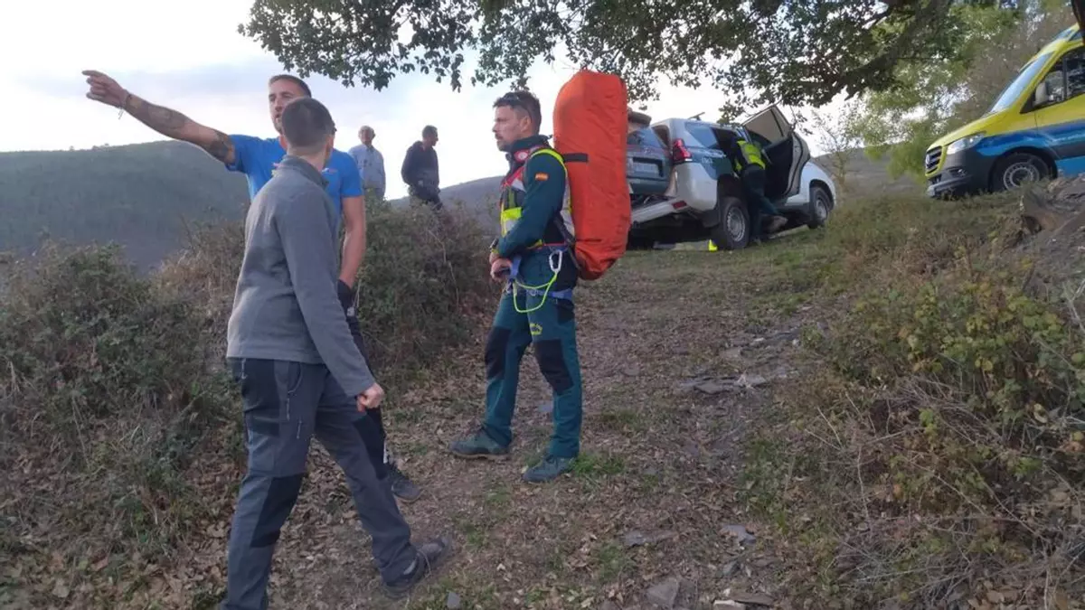 Grupos de Rescate Especial e Intervención en Montaña han acudido este sábado al lugar donde ha sido hallado el cuerpo de Marinoucho, un arroyo conocido como regato Carballido