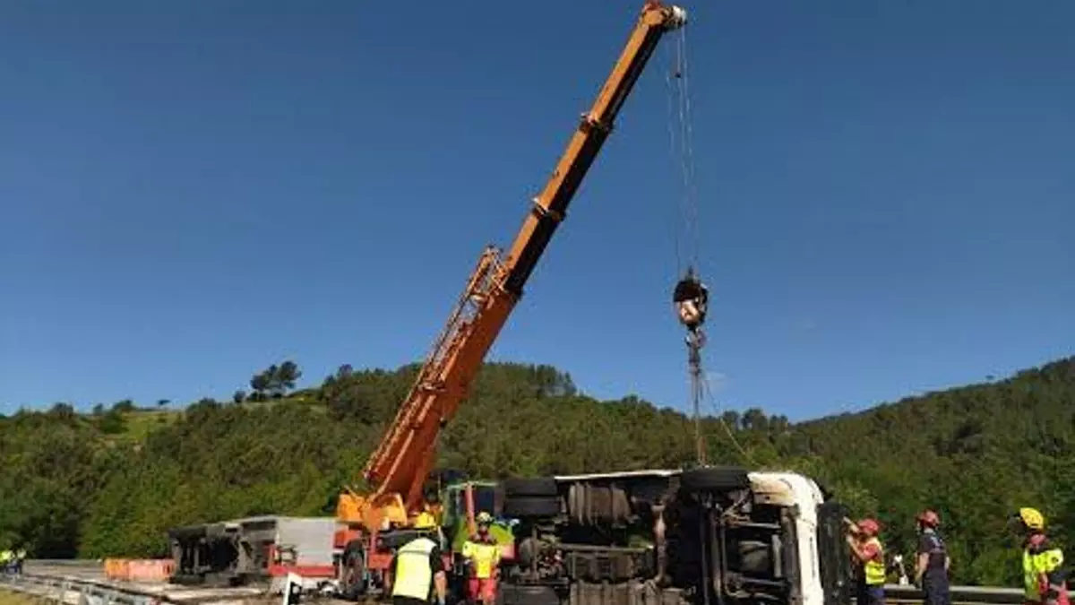El elevado peso del camión y de su carga dificultaron las tareas de rescate de los cuerpos, para las que fue necesario llamar a una grúa de gran tonelaje para retirar el vehículo, que llegó a quedar incrustado contra el guardarraíl.