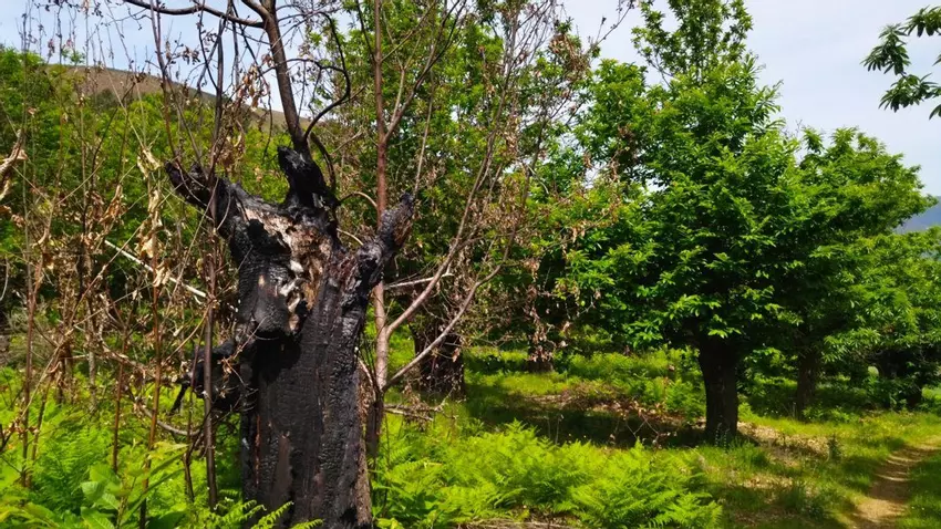 Para conocer el porcentaje de castaños que dañó el fuego del verano pasado habrá que esperar a la próxima cosecha, siendo muy difícil su cuantificación al coincidir en una misma finca árboles destrozados del todo con otros dañados parcialmente y otros que se libraron de las llamas. En todo caso, en el sector no descartan que pueda haber quedado destruido el 10 % del total de ejemplares.