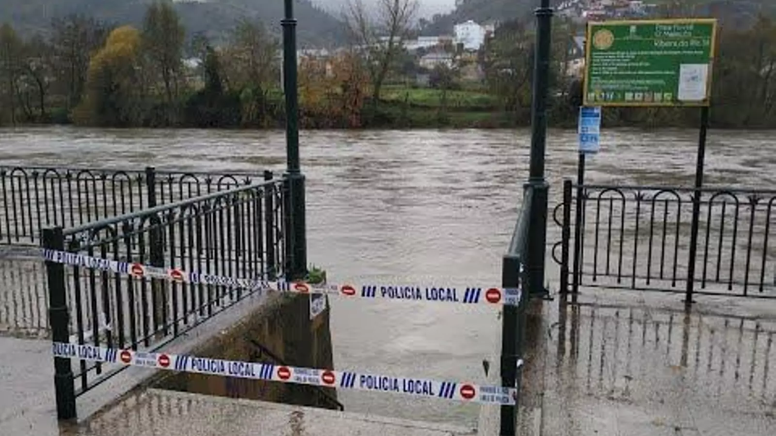 El río Arnoia en Baños de Molgas entra en prealerta según la Confederación y confirman desde Protección Civil que la carretera que va a Os milagros desde la localidad ya está cortada al tráfico por inundación, como sucede casi todos los años por estas fechas