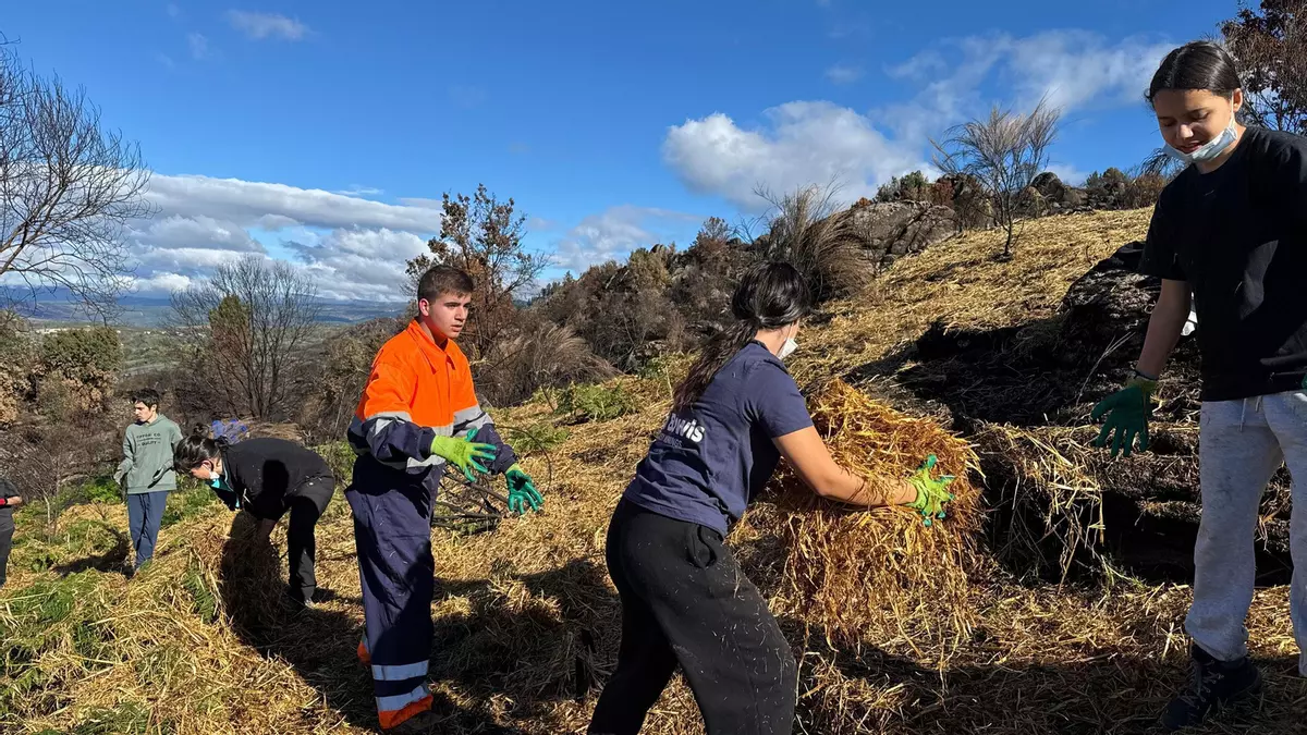 A lo largo del día, los estudiantes se dividieron en seis grupos con tareas bien definidas. Muchos formaron cadenas humanas para agilizar el reparto y esparcimiento de paja seca para evitar la erosión del suelo, el conocido como “mulching”.