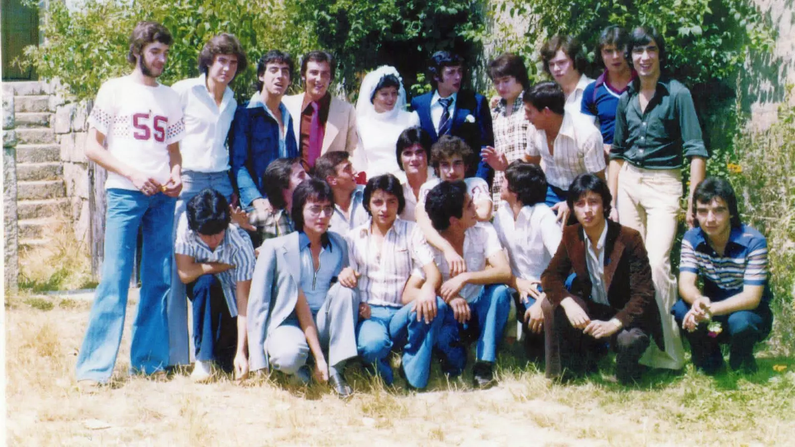 En la imagen nos muestra a un grupo de amigos disfrutando de la boda de dos de sus amigos: Rosa y Santas, en Xinzo de Limia, lugar de donde es ella y donde disfrutaron de la comida nupcial en el restaurante Orly y acabaron la fiesta a altas horas de la madrugada primero en la discoteca Anduriña y, a continuación, en la verbena del pueblo de Ganade, Xinzo, donde bailaron al ritmo de la orquesta encargada de hacer la sesión. Y, tal y como manda el refrán, de una boda sale otra, en este caso, más bien fueron cuatro los enlaces resultantes, y algunos integrantes de esta pandilla siguieron la estela iniciada por Santos y hasta el año 1981 se sucedieron las bodas.