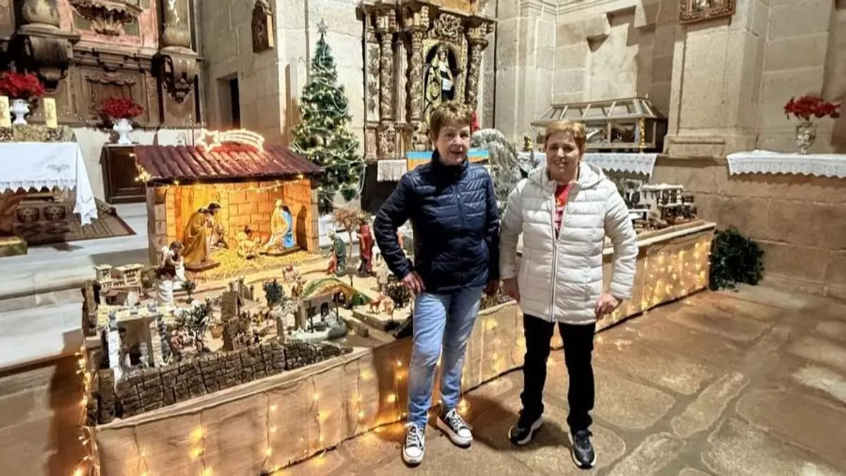 La ilusión por la Navidad es la principal motivación que ha llevado a Marisa Estévez y Mónika Garaventa a elaborar un impresionante belén que luce ya en la Iglesia de San Martiño de A Mezquita.