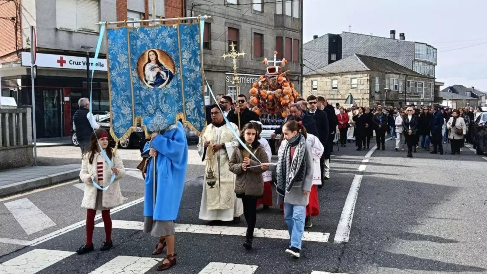 Inmerso en su festividad local, los actos religiosos dieron comienzo a las 12:30 horas con el solemne “Canto do Ramo” en la Iglesia de San Martiño, acto que simboliza el inicio oficial de la celebración. A continuación, los vecinos recorrieron las calles del municipio hasta llegar a la aldea de San Pedro portando la imagen del Beato.