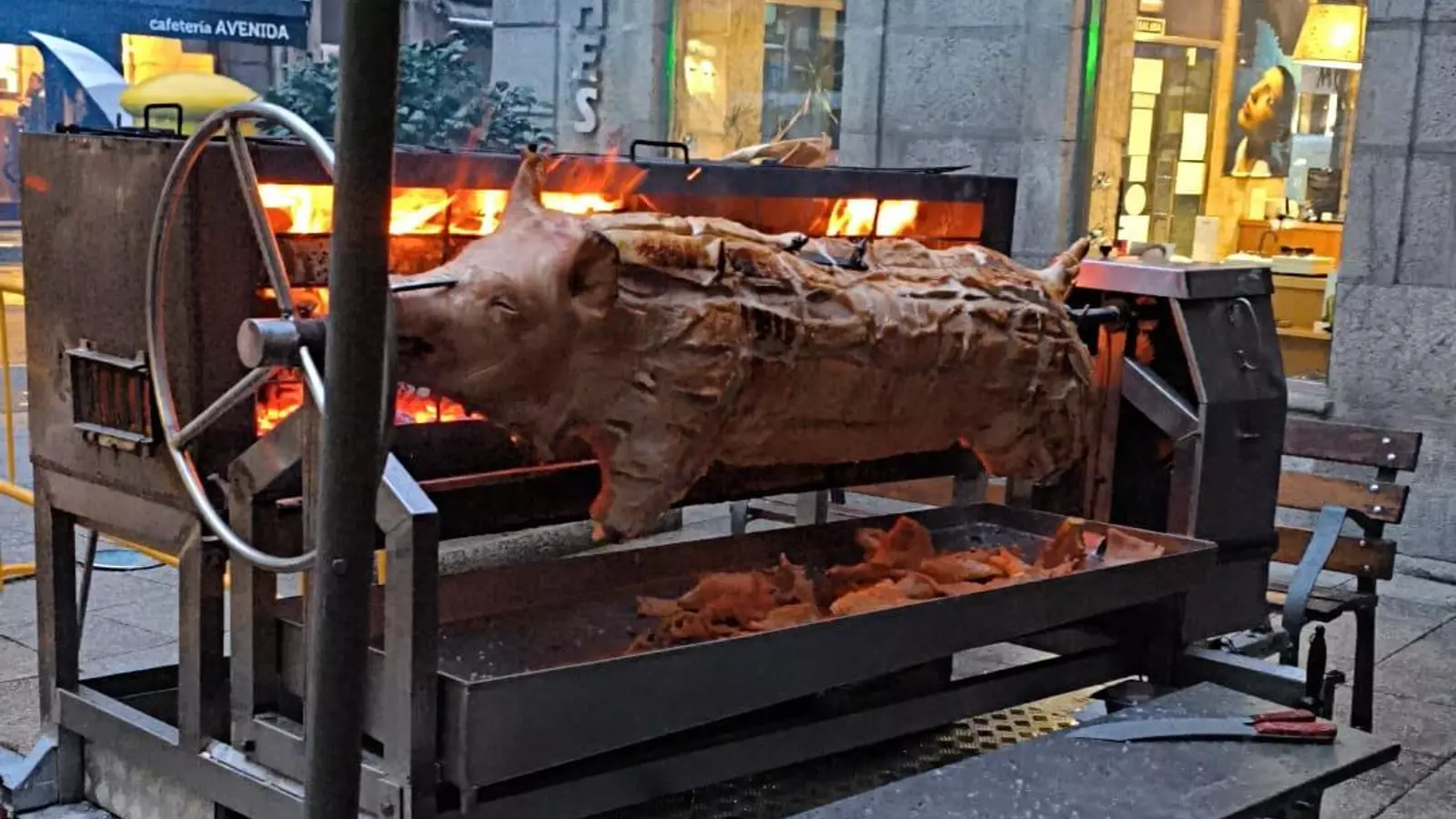 Porco ao espeto, empanada, bica, viño e castañas, foron os petiscos que prepararon dende A Pantalla para un “magosto completiño”