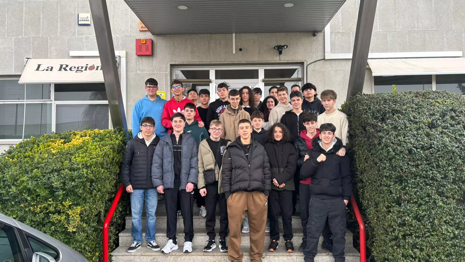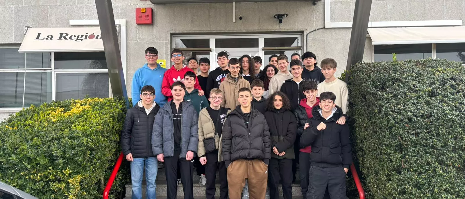 Un grupo de estudiantes del IES Blanco Amor realizó una visita formativa a las instalaciones de Telemiño y del periódico La Región con el objetivo de conocer de primera mano el funcionamiento interno de los medios de comunicación.