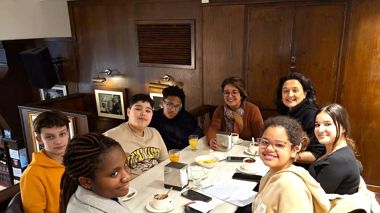Alumnas e alumnos de Cardenal Cisneros, membros do Clube de Lectura, saíron á rúa para compartir lecturas e palabras en espazos emblemáticos da cidade, achegando a literatura á vida cotiá e convidando á cidadanía a participar desta experiencia cultural. Durante estes días visitaron varios cafés con historia, nos que tiveron ocasión de descubrir a beleza do Pazo de Oca Valladares, actual sede do Liceo de Ourense, así como outros lugares cheos de memoria e tradición como A Coruñesa. Estes encontros converteron cada parada nun pequeno escenario literario aberto ao diálogo e á emoción compartida. Na terceira sesión fóra das aulas, o alumnado gozou do encanto do Café Latino e da orixinalidade do Druida.