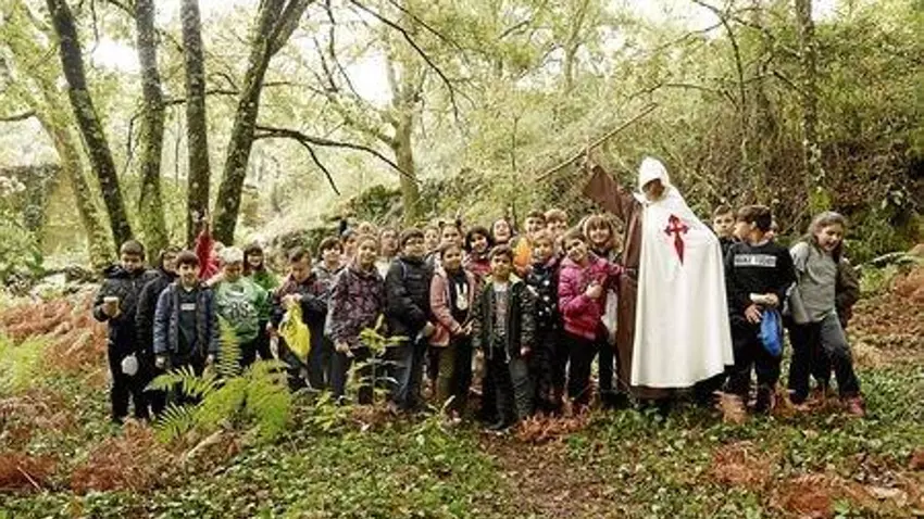 Nenos e nenas, do CEIP Plurilingüe Profesor Albino Núñez, xunto a maiores, un total de oito do centro Fogar de San Amaro, aos que se sumaron voluntarios e profesores, compartiron unha ruta de outono pola contorna, arredor do bosque de Falán. Unir pasado e presente, realidade e misterio foron algunhas das curiosidades deste encontro ao que se sumou o último prior do Mosteiro de Santa Comba de Naves. Iniciaron o percorrido no pobo de Naves, onde os agardaba Camilo, un veciño de Palmés que se ofreceu de guía ao longo de toda a xornada. Comezaron a ruta desde a baixada deste pobo ata o Mosteiro, camiño ao longo do que aproveitaron para recoller lixo.