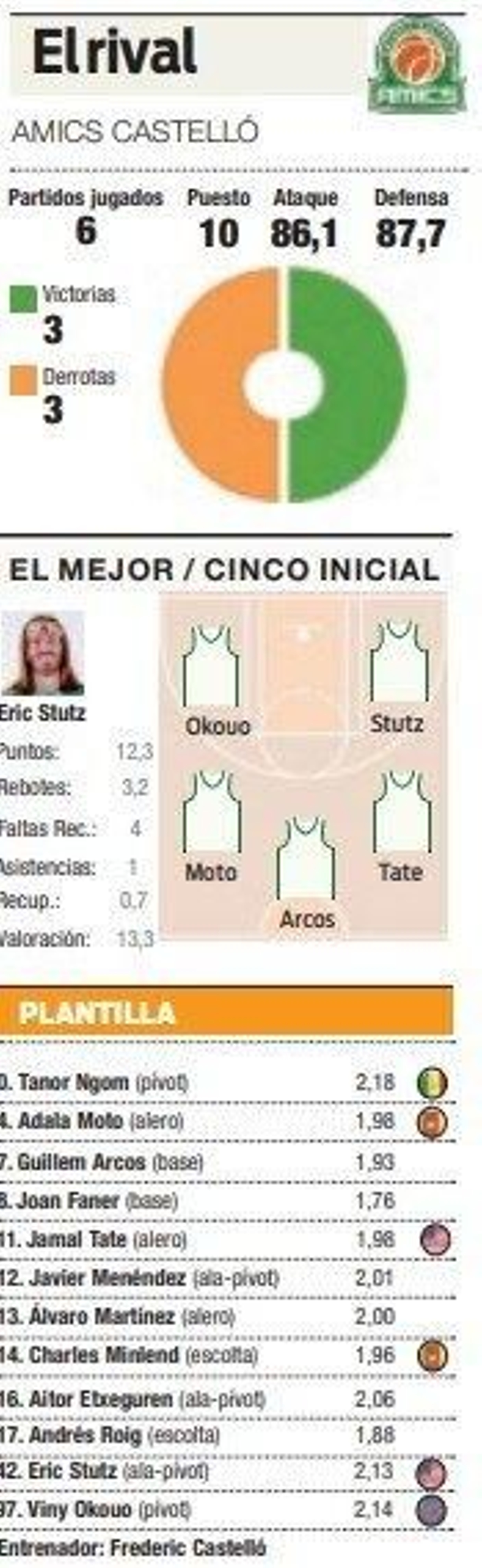 Individualmente el Castellón asusta. Empezando por su batería interior. El COB sufre en el rebote cada vez que no está Romaro Gill en pista y en este partido tendrá a tres jugadores de su “talla”. Esté quien esté en pista, los locales siempre tendrán muchos centímetros. Viny Okou es y se hace grande cerca del aro y su relevo, Tanor Ngom es un 2,18 igual de ágil que el pívot cobista. Además, Eric Stutz es un 2,13, uno de los interiores con más calidad de la categoría y jugando además como “cuatro”. Etxeguren y Menéndez son todavía más madera para el juego interior.