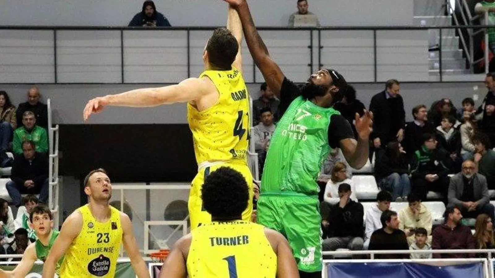 Porque hubo cuatro cuartos, pero un único guion más allá del intercambio inicial de canastas. Okouo golpeaba una zona cobista demasiado desguarnecida. Los ourensanos lo compensaban con un poco de cada (8-13, m.4) para un primer parcial de ventaja mínima, 20-21, pero sensación de que eres mejor sí o sí.