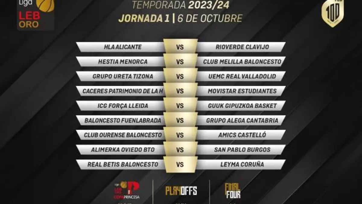 El Club Ourense Baloncesto ya conoce su calendario para la temporada 2023/2024 en la LEB Oro, que esta vez no será simétrico por primera vez. El primer rival del conjunto ourensano, que liderara el entrenador Félix Alonso, será el Amics Castello el 7 de octubre en el Pazo dos Deportes Paco Paz. De esta forma, el COB iniciará la competición ante sus aficionados el sábado por la tarde.