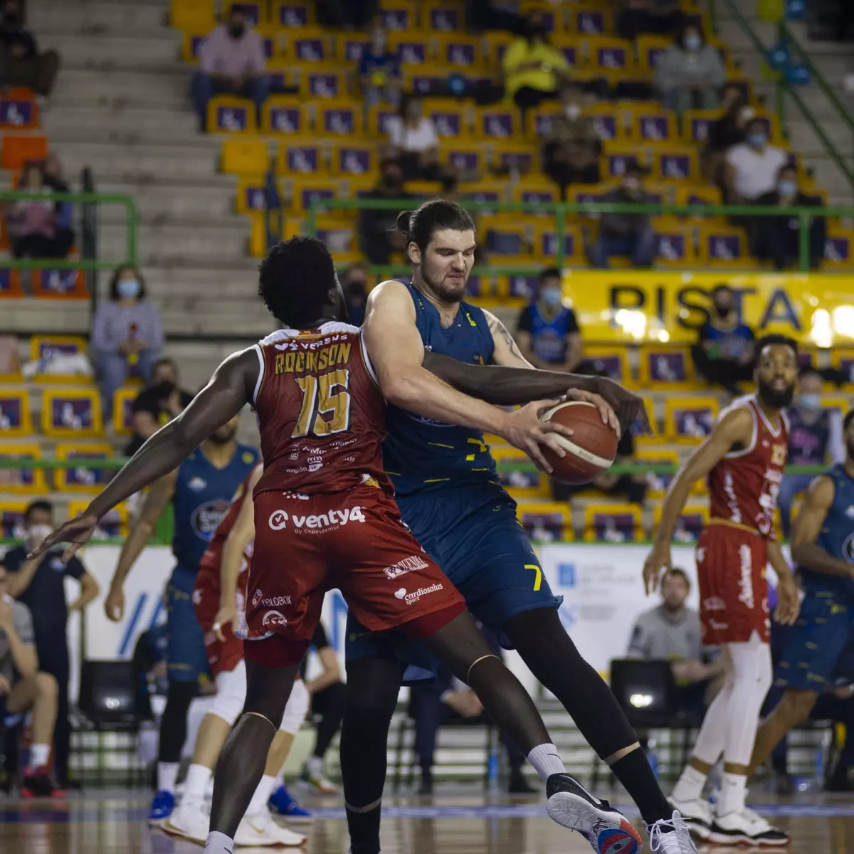 El Ibereólica Renovables Ourense cayó derrotado ante el Real Murcia en un igualado encuentro que se decidió en el último minuto con un triple del excobista Diego Kapelan. Con esta derrota, el equipo que dirige Gonzalo García de Vitoria se convierte en uno de lo cuatro que descienden a LEB Plata (77-78). FOTOS: Martiño Pinal